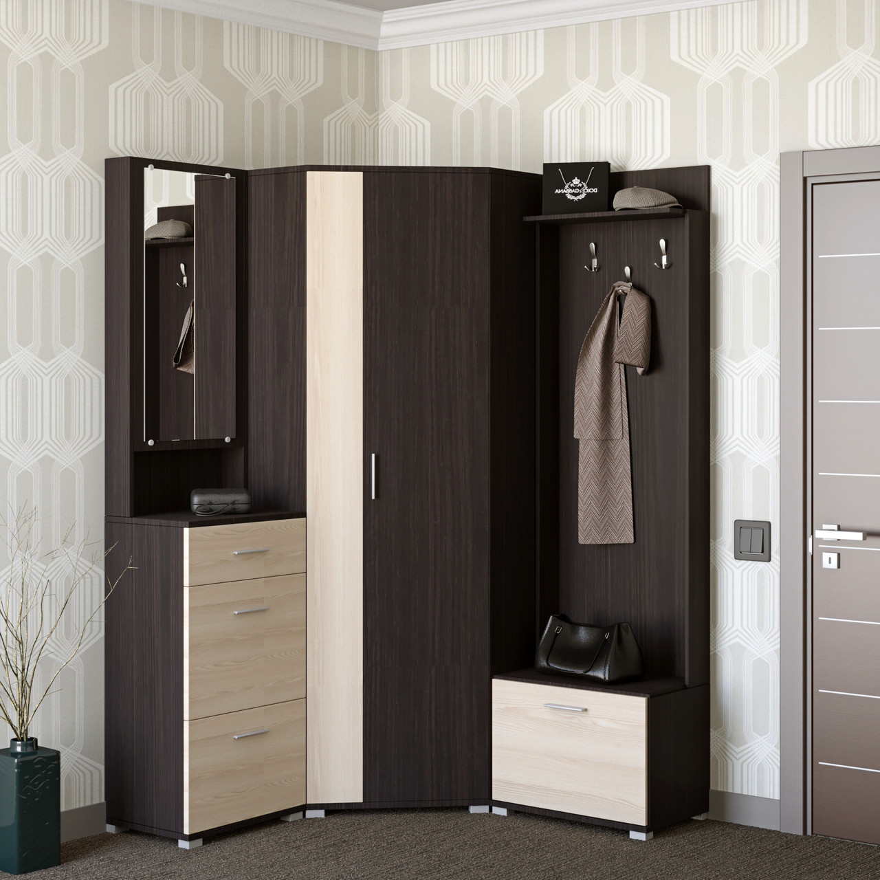 Передпокій Еверест Бриз-3 з кутовою шафою ШКУ-14 (3 елементи) венге + дуб молочний (DTM-2656)