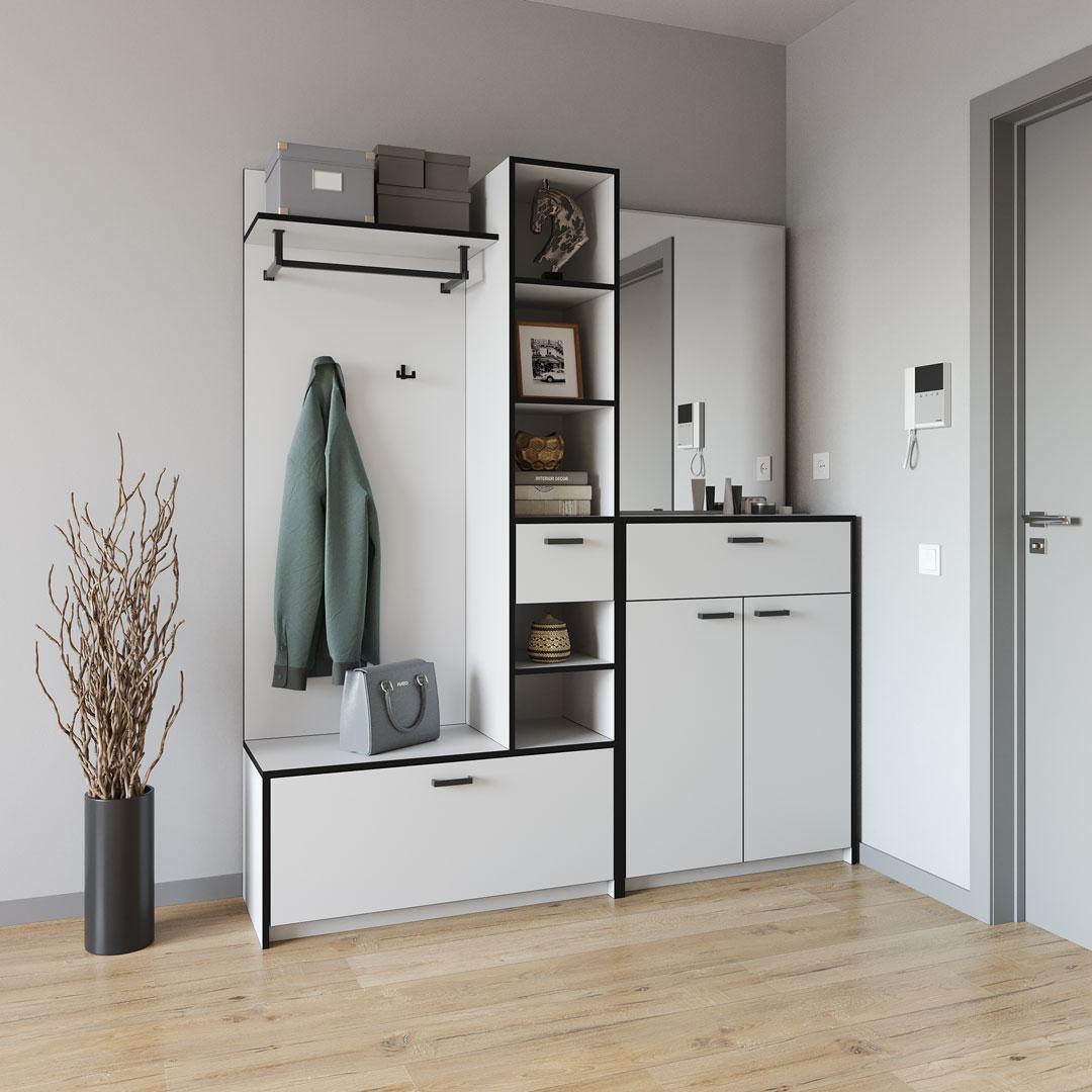 Комплект передпокою "КОРНЕЛІЯ" — це стильне та багатофункціональне рішення для вашої оселі. Поєднання сучасних та класичних кольорів надає передпокої елегантного вигляду, який легко впишеться у будь-який інтер'єр.